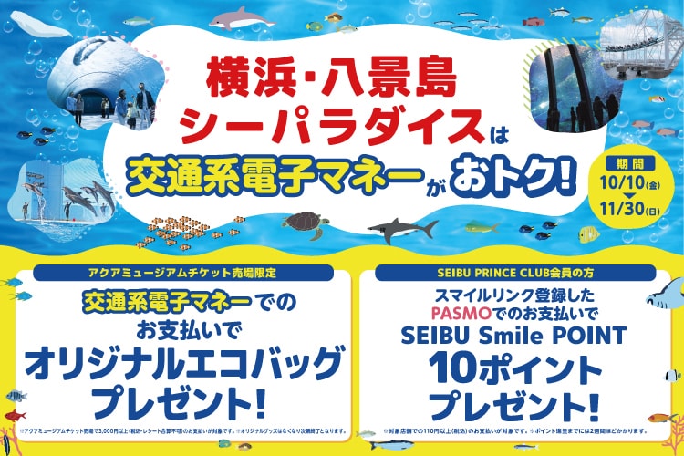 交通系電子マネーやスマイルリンク登録したPASMOでのお支払いで、オリジナルエコバッグやポイントをプレゼント!