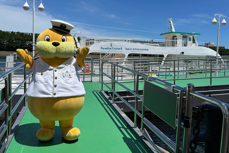 Paradise CruiseⅡに乗ってシー太と一緒に新年をお祝いしよう!船長スタイルのシー太がみんなをお出迎え♪チケットをお持ちの方1名につき、オリジナルグッズを1つプレゼントします。