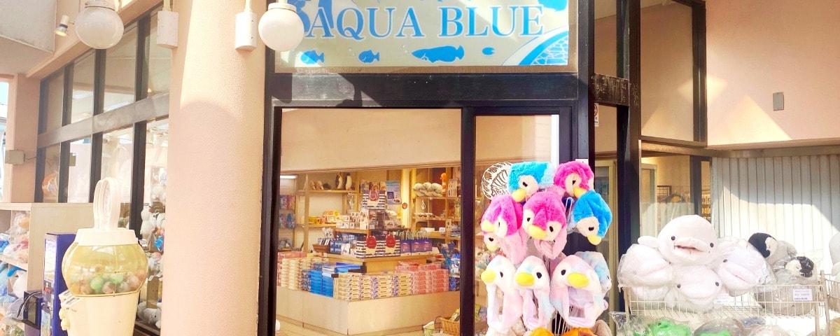 アクアミュージアム4F出口を出て真っすぐ進むと正面にあるマリングッズのお店です。店頭にあるたくさんの可愛いぬいぐるみが目印です。