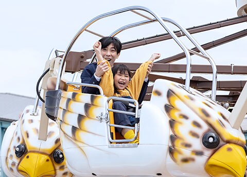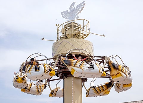 高さ10mまで上昇し、まるでワシに乗って空を飛んでいるかのような爽快感あふれる回転展望型アトラクションです。