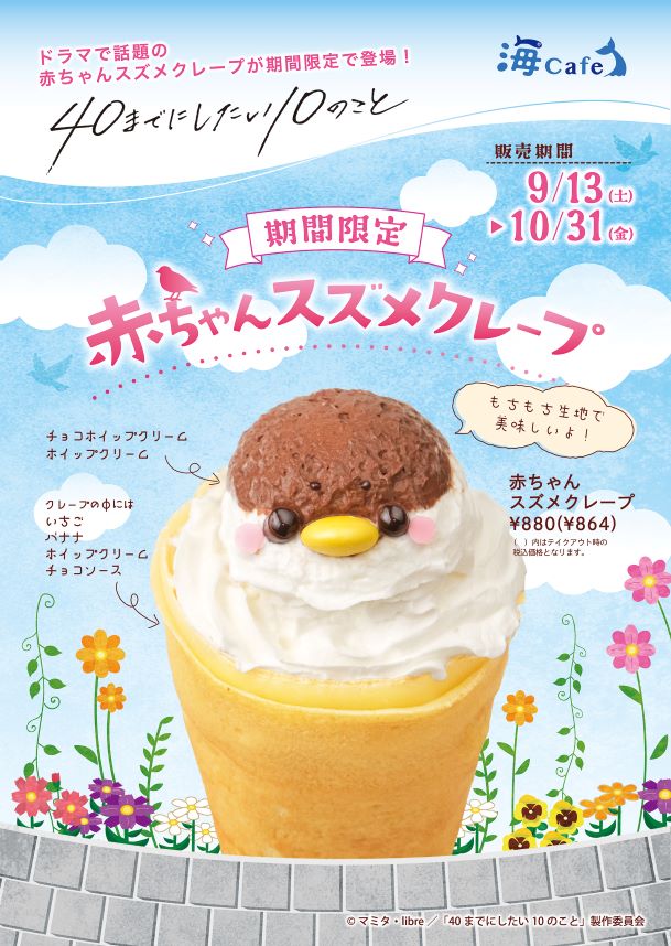 ドラマ「40までにしたい10のこと」で話題の「赤ちゃんスズメクレープ」が期間限定で登場!