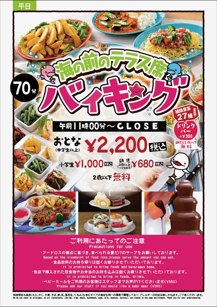 除了前菜、热菜、甜品,还有咖喱、意大利面、土豆等孩子们喜欢的西餐!您可以尽情享用使用时令食材烹制的各种菜肴。