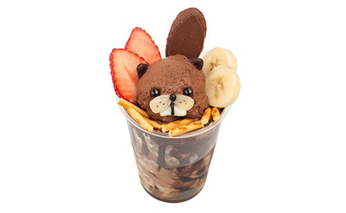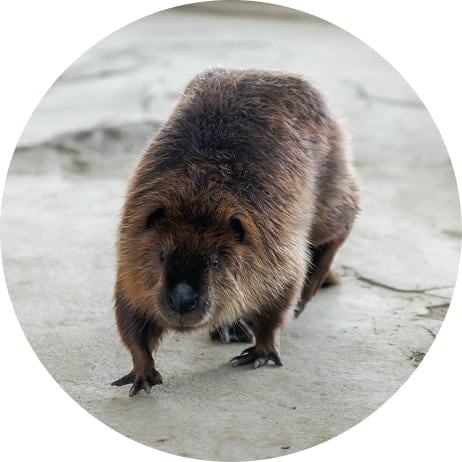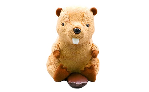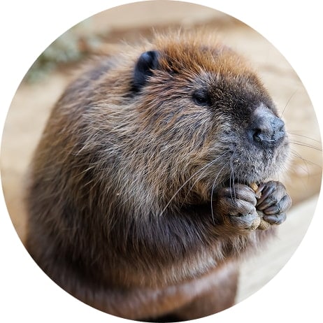 大きな前歯はオレンジ色でとっても丈夫。木をかじって倒すことでダムや巣を作ります。大きな前歯は一生伸び続けるため、常に鋭さを保ち効率よくかじり続けることができます。