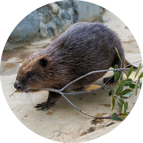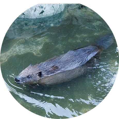 枝や泥を使って川にダムを作ります。ビーバーはキーストーン種(生態系の維持に不可欠な種)に分類され、水の流れを緩やかにすることで生きものたちの生態系を支えています。