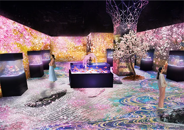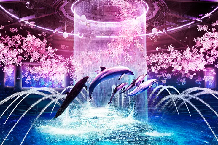 和楽器の雅な音色と桜色のライティングがクラゲたちの魅力を引き立てます。