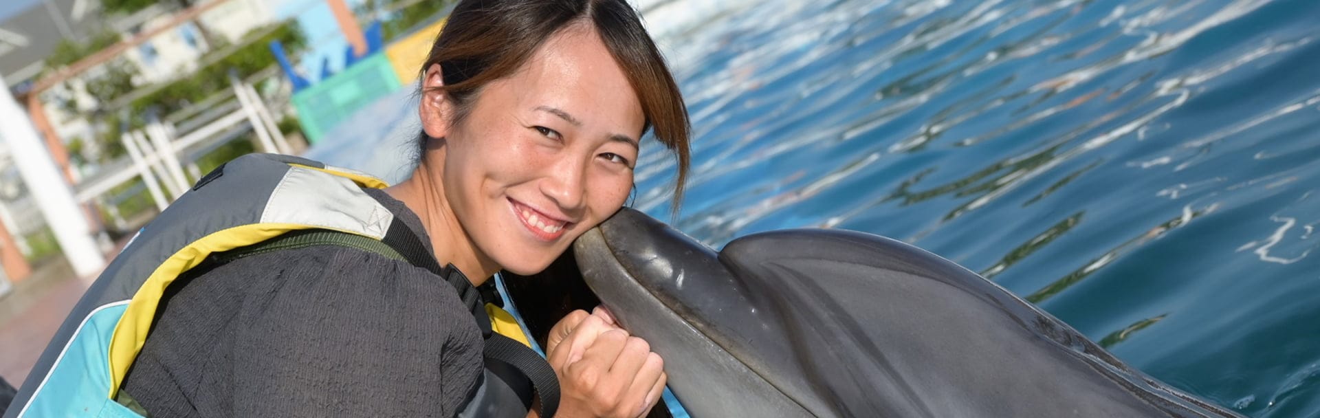可以一邊和海豚嬉戲,一邊拍照留唸的節目!也可以餵飯。【收費:1,000日元,需要提前在網上預約】